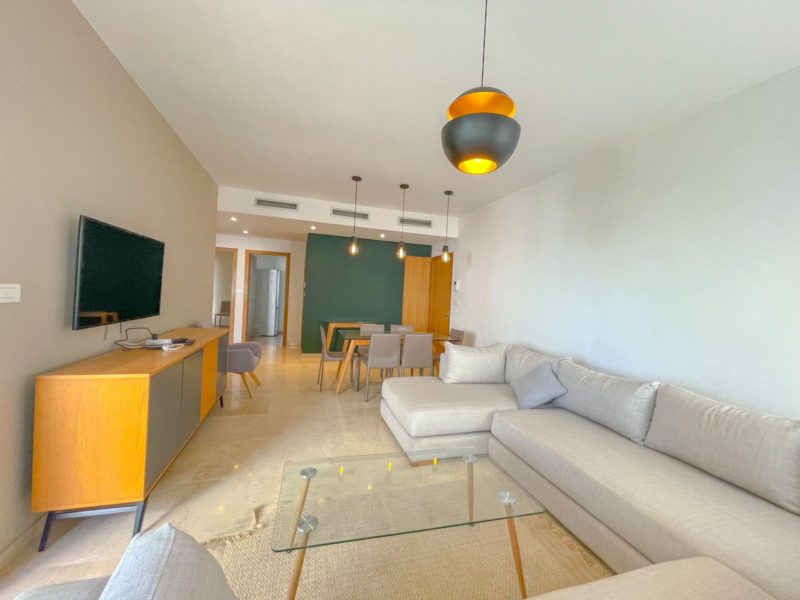 Cet appartement est proposé à la location à Casablanca Finance City. Dispose d’une terrasse, ascenseur et places de parking. Nombreux équipements dont climatisation. La résidence dispose également d’un service de conciergerie.
