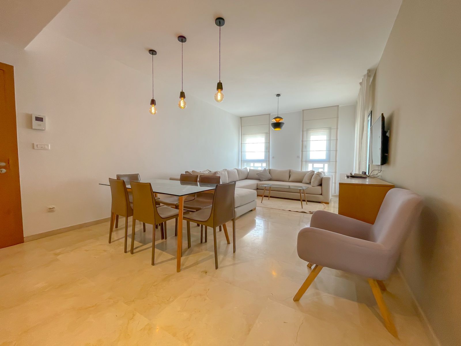 Programmez dès maintenant votre visite pour cet appartement d’exception à Casablanca. Sécurité garantie avec surveillance. Système d’antenne parabolique. Équipé d’une TV. Lave-linge.