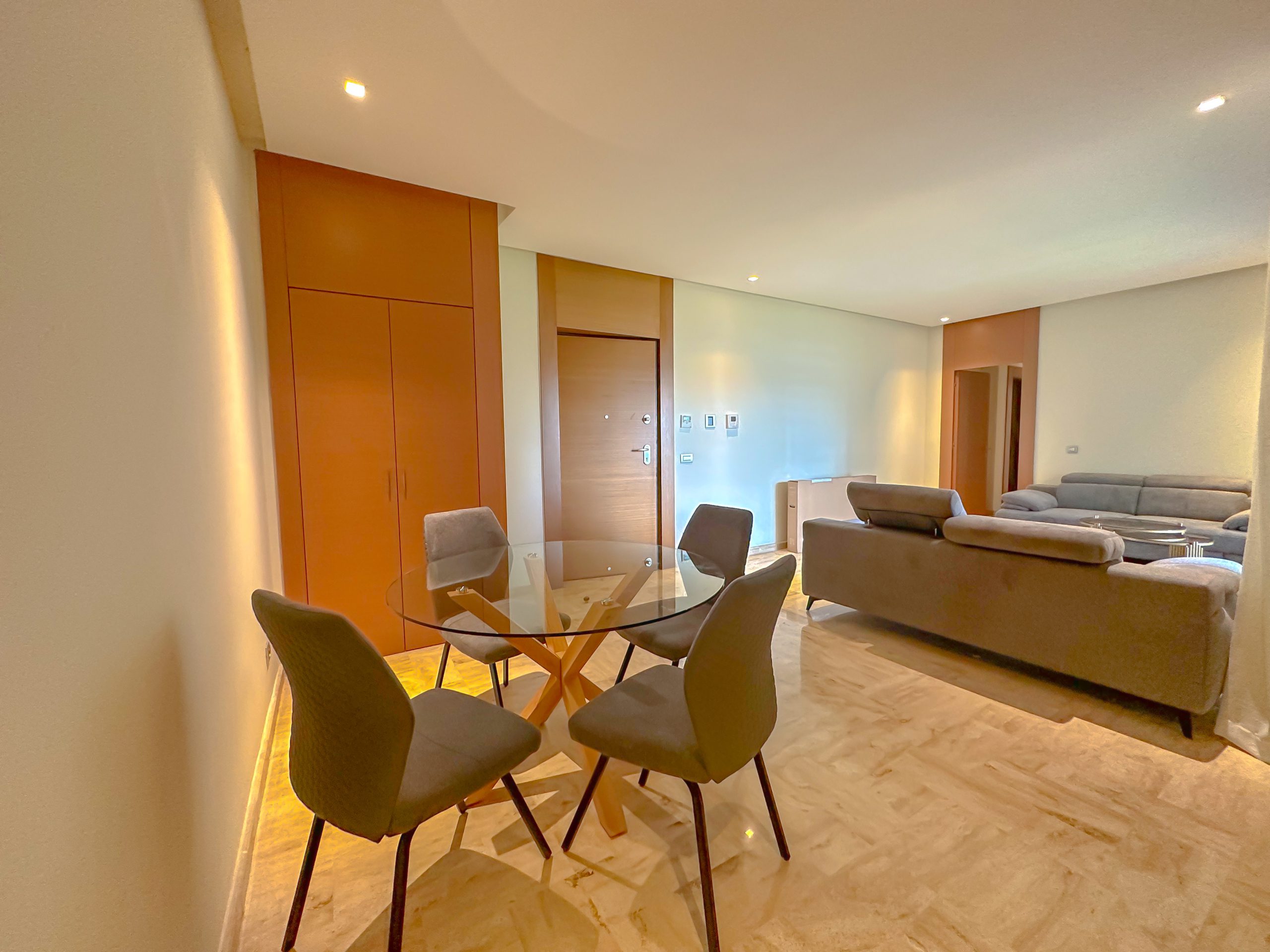 un très bel appartement de 90 m² loué vide. Situé au cœur du nouveau quartier financier de Casablanca, à 2 minutes du CIL , dans une très résidence sécurisée.