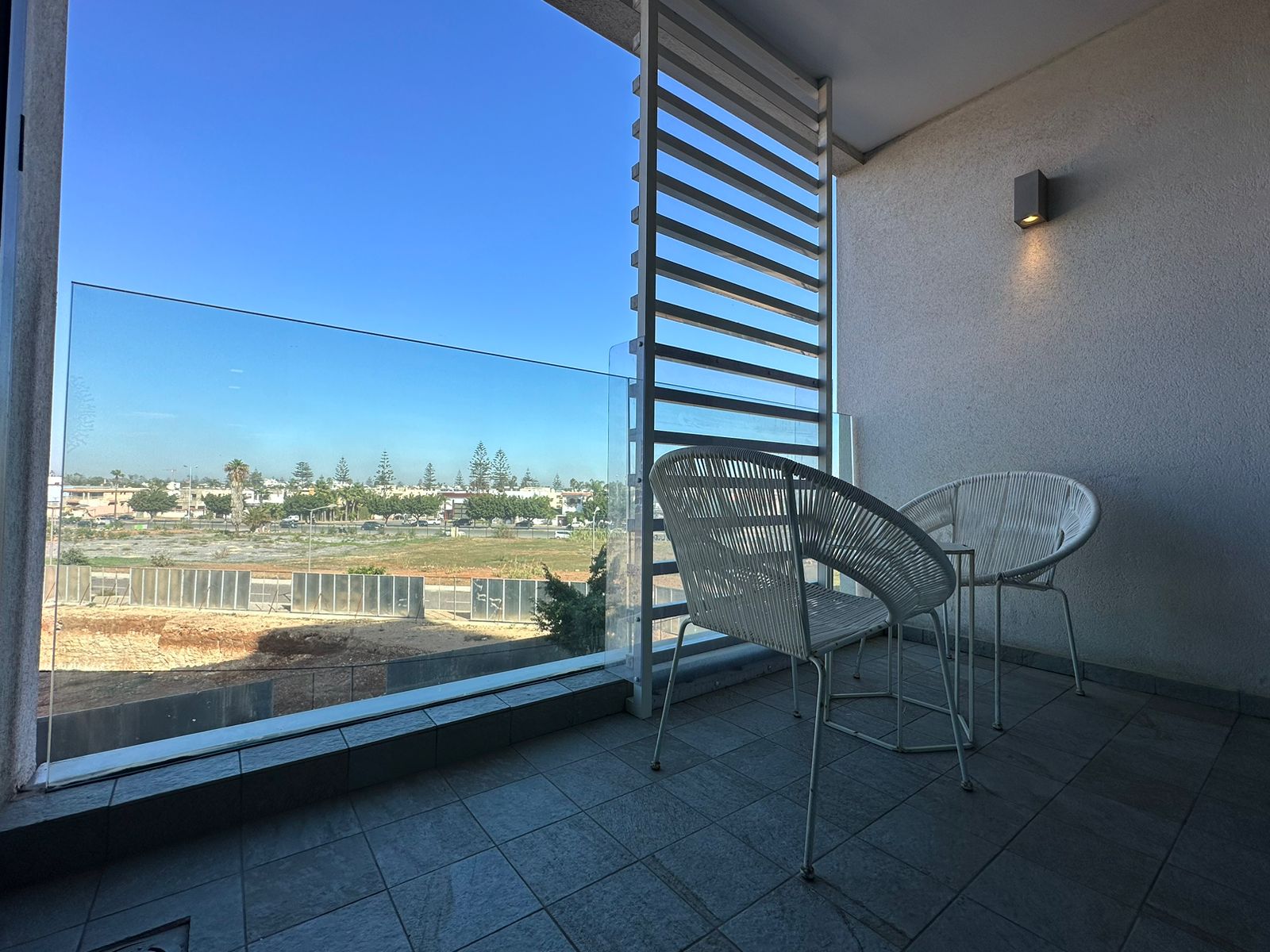 une terrasse et un parking